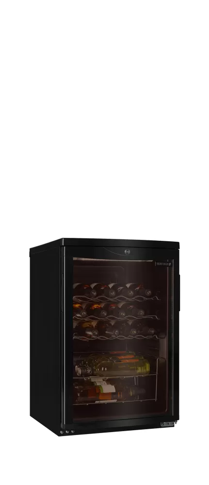 Kvalitní podpultová vinotéka s elegantní černou úpravou povrchu. Uvnitř jsou police na víno pro uložení až 22 lahví 0,7 l. Vinotéka se skvěle hodí pro skladování bílých a růžových vín. Je vybavena ventilátorem, který zajišťuje rovnoměrné chlazení v celém vnitřním prostoru a udržuje ideální teplotu skladovaného vína k okamžitému podávání. chlazení s pomocným ventilátorem|černý interiér a exteriér|tónované prosklené dveře pro ochranu vína|nastavitelné police|vnitřní LED osvětlení|oblé prosklené tónované dveře, lze měnit otevírání|prosklené křídlové dveře|nastavitelné nožky|zámek Malá černá vinotéka vhodná pod pult