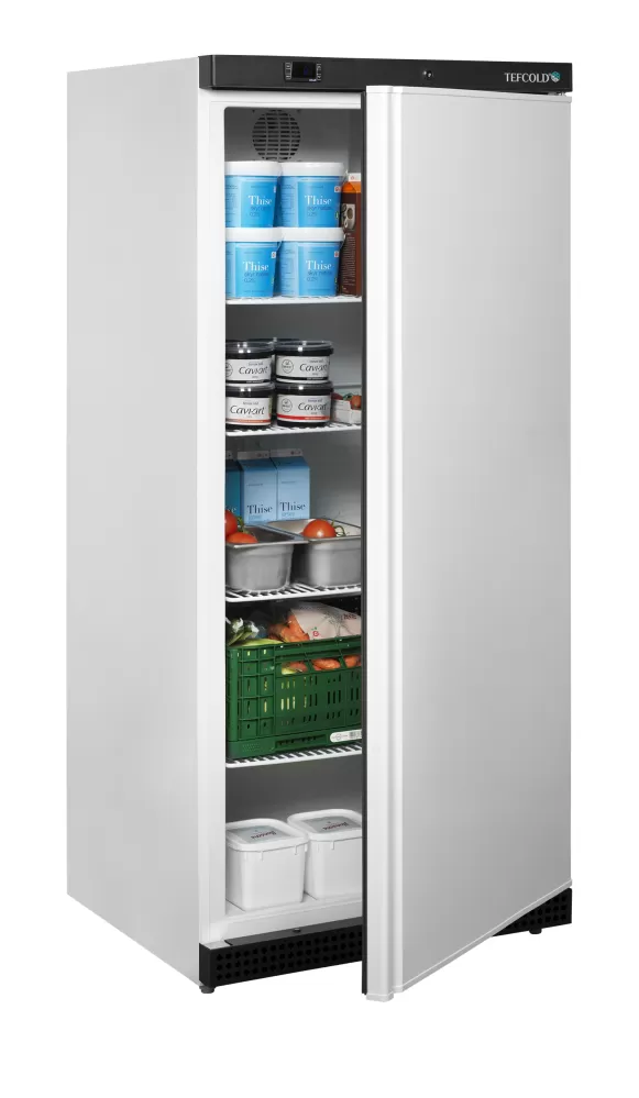 Řada chladicích skříní UR nabízí vysokou kvalitu a spolehlivost v čistém designu s integrovanou rukojetí. Chlazení s ventilátorem zajišťuje stabilní teplotu v celé skříni, kterou lze snadno regulovat pomocí elektronického termostatu. Dodává se v různých velikostech s nastavitelnými policemi, takže interiér snadno přizpůsobíte svým potřebám. integrované madlo|plné dveře, lze měnit otevírání|elektronický termostat |chlazení s pomocným ventilátorem|nastavitelné police|zámek|digitální termostat a teplotní displej|nastavitelné nožky s pojezdovými válečky vzadu Jednodveřová chladicí skříň s plnými dveřmi, barva bílá