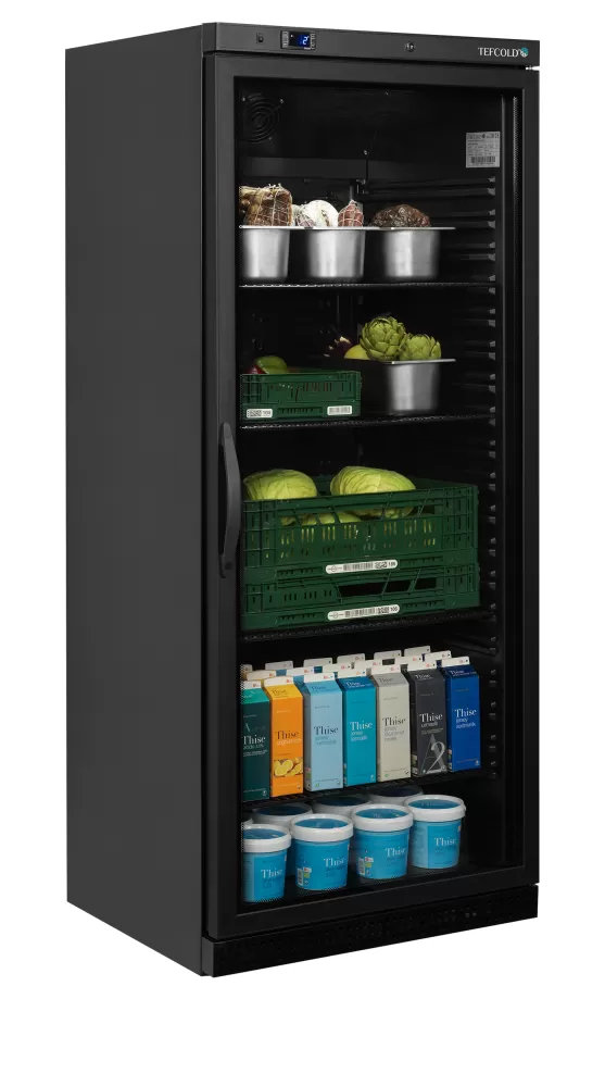 Řada chladicích skříní UR-BG je černá verze našich skříní UR s prosklenými dveřmi. Tyto chladicí skříně nabízejí skvělou viditelnost výrobků, otevírání dveří lze měnit. Chladicí skříně mají nastavitelné police, takže si je můžete snadno přizpůsobit svým potřebám. Chlazení s pomocným ventilátorem zajišťuje stabilní teplotu v celé skříni, kterou lze snadno regulovat pomocí elektronického termostatu. černý interiér a exteriér|nastavitelné police GN 2/1|prosklené dveře, lze měnit otevírání|chlazení s pomocným ventilátorem|digitální termostat a teplotní displej|vnitřní LED osvětlení|nastavitelné nožky s pojezdovými válečky vzadu|zámek Černá chladicí skříň s policemi GN2/1