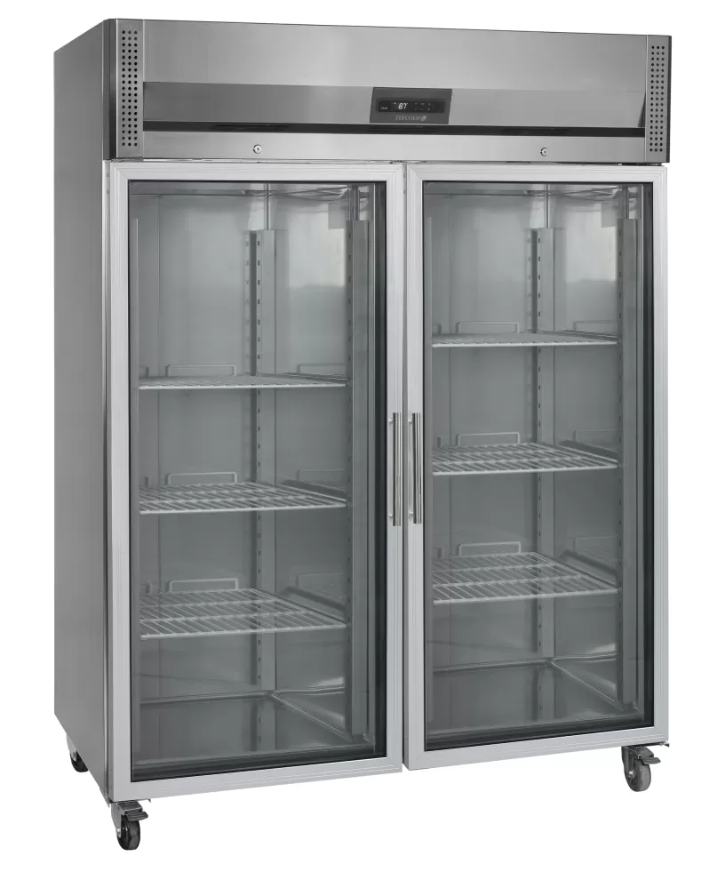 Řada chladicích skříní skříní RK-G s 1 nebo 2 prosklenými dveřmi je určena pro profesionální kuchyně a má nastavitelné police s rozměry GN2/1. Chladicí skříň je vyrobena z vysoce kvalitní nerezové oceli SS304 vhodné pro gastronomii a má odolná kolečka pro snadné přemísťování, což se hodí při čištění kuchyně. Ventilované chlazení zajišťuje rovnoměrnou teplotu v každém místě skříně, teplotu lze nastavit na digitálním termostatu. Skříně jsou k dispozici také s plnými dveřmi. nerezový exteriér a interiér|ventilované chlazení|zámek|nastavitelné police GN 2/1|odolná kolečka|samozavírací dveře se 105° zarážkou Chladicí skříň s prosklenými dveřmi