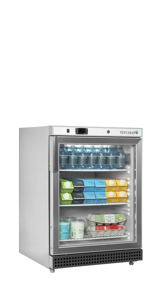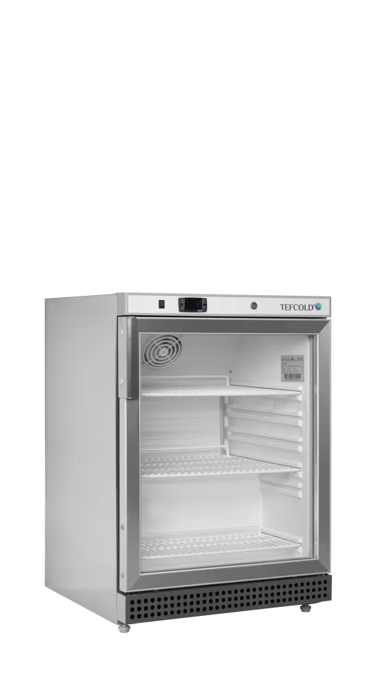 Chladicí skříň se skvěle hodí i do náročného gastroprovozu. Police jsou stabilní, lze na ně pokládat i těžší váhy, nosnost každé police je až 25 kg. Díky této nosnosti se jedná o ojedinělý produkt na trhu. V této sérii jsou k dispozici modely chladicí i mrazicí, s plnými dveřmi i s prosklenými. prosklené křídlové dveře|elektronický termostat |nastavitelné police|chlazení s pomocným ventilátorem|nerezové provedení|plně automatický provoz|nastavitelné nožky s pojezdovými válečky vzadu|vnitřní LED osvětlení s vypínačem Chladicí skříň jednodveřová s prosklenými dveřmi, provedení nerezové opláštění