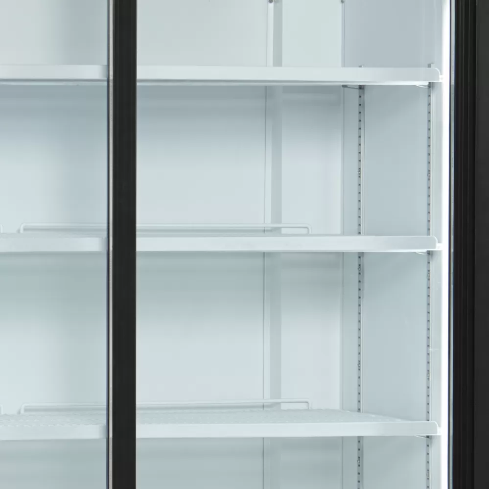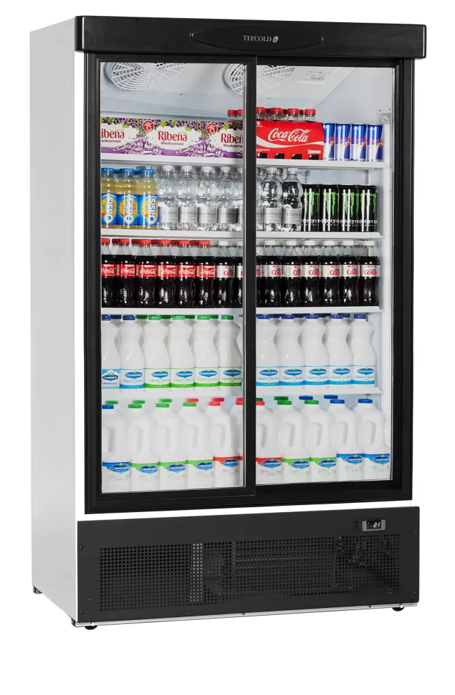 Řada FSC dvoudveřových a třídveřových chladicích skříní s osvětleným reklamním panelem nabízí vynikající kvalitu provedení za příznivou cenu. Vyberte si mezi chladicími skříněmi s bílým nebo černým vnějším povrchem a s černými prosklenými dveřmi s hliníkovým rámem – křídlovými nebo posuvnými. Police jsou nastavitelné, řada FSC tak představuje flexibilní řešení. Získáte skvělou prezentaci výrobků v kombinaci s výkonným systémem ventilovaného chlazení řízeným elektronickým termostatem. Mnoho modelů je také k dispozici bez reklamního panelu (řada FS). samozavírací posuvné prosklené dveře|vnitřní svislé LED osvětlení|nastavitelné police|práškově lakované vnitřní obložení|nastavitelné nožky|ventilované chlazení Chladicí skříň dvoudveřová s prosklenými dveřmi