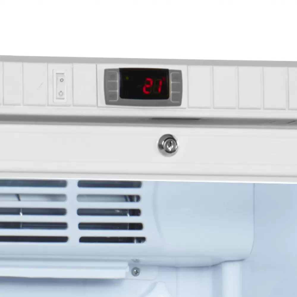 Řada lékařských chladicích skříní MSU je vybavena elektronickým termostatem se zvukovým alarmem s možností připojení externího alarmu pro větší bezpečnost. Prosklené dveře umožňují dobrý přehled o obsahu a chlazení s ventilátorem zajišťuje rovnoměrnou teplotu ve skříni. Chladicí skříň se dodává s krytem výparníku, který zabraňuje poškození léků. K dispozici je ve dvou velikostech. Upozorňujeme, že řada MSU nesplňuje normu DIN13277. prosklené křídlové dveře|elektronický termostat |akustický alarm|připojení externího alarmu|nastavitelné police|automatické odmrazování|nastavitelné nožky|chlazení s pomocným ventilátorem|vnitřní LED osvětlení Chladicí skříň s prosklenými dveřmi