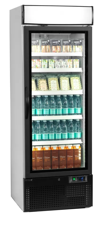 Řada chladicích skříní NC má velmi nízkou spotřebu energie. Dodává se s 1, 2 nebo 3 dveřmi a nabízí úctyhodný úložný prostor. Osvětlený reklamní panel upoutá pozornost zákazníků, zatímco samozavírací prosklené dveře, nastavitelné police a vnitřní vertikální LED osvětlení zajistí, že obsah bude vypadat co nejlépe. velký úložný prostor|reklamní panel s LED osvětlením|vnitřní svislé LED osvětlení|samozavírací prosklené dveře|ventilované chlazení|nastavitelné police|stejný jako mrazicí model