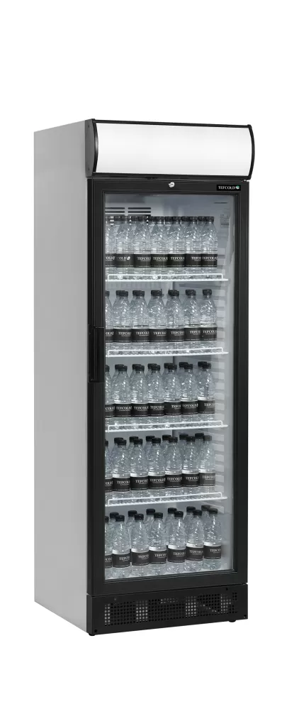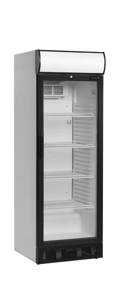 Řada chladicích skříní na nápoje SCU nabízí velký výstavní a úložný prostor. Dodává se v několika velikostech, s osvětleným reklamním panelem, nebo bez něj. Jedná se o bílou skříň s černými oboustrannými prosklenými dveřmi s hliníkovým rámem, nastavitelnými policemi a vnitřním LED osvětlením pro optimální prezentaci výrobků. Chladicí systém s ventilátorem zajišťuje rovnoměrné chlazení celé skříně. reklamní panel s LED osvětlením|lze měnit otevírání dveří|nastavitelné police|nastavitelné nožky|vnitřní LED osvětlení|prosklené křídlové dveře s hliníkovým rámem|chlazení s pomocným ventilátorem Chladicí skříň jednodveřová s prosklenými dveřmi