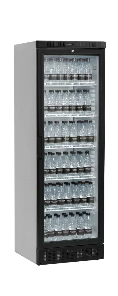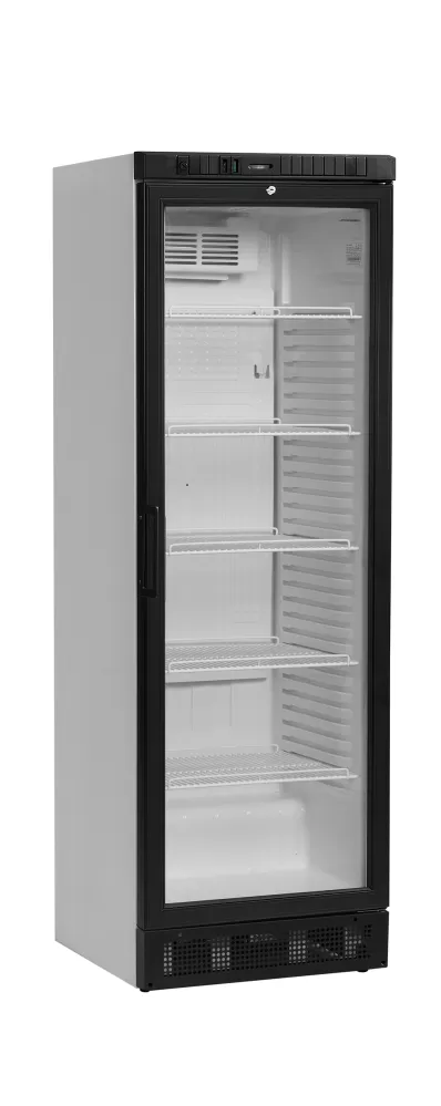 Řada chladicích skříní SCU nabízí velký výstavní a úložný prostor. Dodává se v několika velikostech, se světelným reklamním panelem nebo bez něj. Jedná se o bílou skříň s černými prosklenými dveřmi s hliníkovým rámem, u kterých lze změnit směr otevírání, s nastavitelnými policemi a vnitřním LED osvětlením pro optimální prezentaci výrobků. Chladicí systém s pomocným ventilátorem zajišťuje rovnoměrné chlazení uvnitř celé skříně. lze měnit otevírání dveří|nastavitelné police|nastavitelné nožky|vnitřní LED osvětlení|prosklené křídlové dveře s hliníkovým rámem|chlazení s pomocným ventilátorem|zámek Chladicí skříň jednodveřová s prosklenými dveřmi