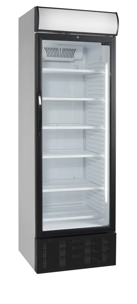 Řada chladicích skříní SCU nabízí velký výstavní a úložný prostor. Dodává se v několika velikostech, se světelným reklamním panelem, nebo bez něj. Jedná se o bílou skříň s černými prosklenými dveřmi s hliníkovým rámem, u kterých lze změnit směr otevírání, s nastavitelnými policemi a vnitřním LED osvětlením pro optimální prezentaci výrobků. Chladicí systém s pomocným ventilátorem zajišťuje rovnoměrné chlazení uvnitř celé skříně. prosklené křídlové dveře|světelný reklamní panel|lze měnit otevírání dveří|nastavitelné police|nastavitelné nožky|chlazení s pomocným ventilátorem|zámek TEFCOLD SCU 1450 CP-I