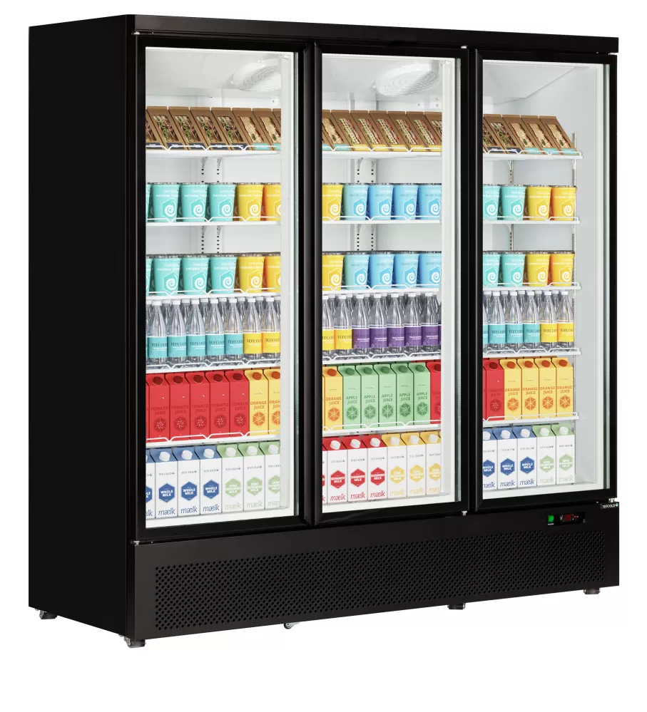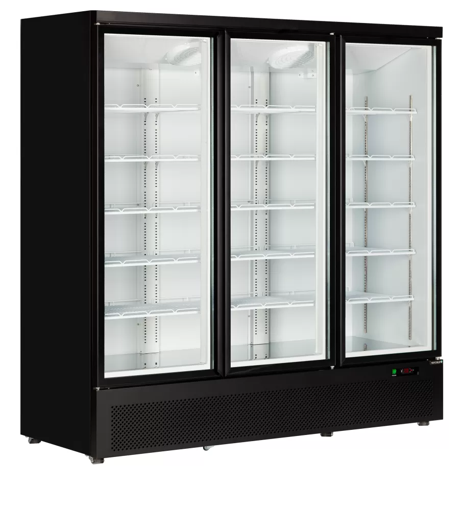 Řada chladicích skříní s prosklenými dveřmi Atom Maxi nabízí skvělou kvalitu za konkurenceschopnou cenu. Je vybavena dvěma nebo třemi samozavíracími prosklenými dveřmi, LED osvětlením a nastavitelnými policemi pro optimální prezentaci výrobků. Disponuje účinným ventilačním chladicím systémem, který zaručuje nízkou spotřebu energie, a snadno ovladatelným regulátorem teploty. K dispozici také v mrazicí verzi. vynikající prezentace produktů|nízká spotřeba energie|samozavírací prosklené dveře|dvojité tvrzené sklo|vnitřní svislé LED osvětlení|ventilované chlazení|nastavitelné police za každými dveřmi|spodní výstavní plocha nerezová |digitální termostat a teplotní displej|kolečka|dostupné také v mrazicí verzi Chladicí skříň s prosklenými dveřmi s nízkou spotřebou energie