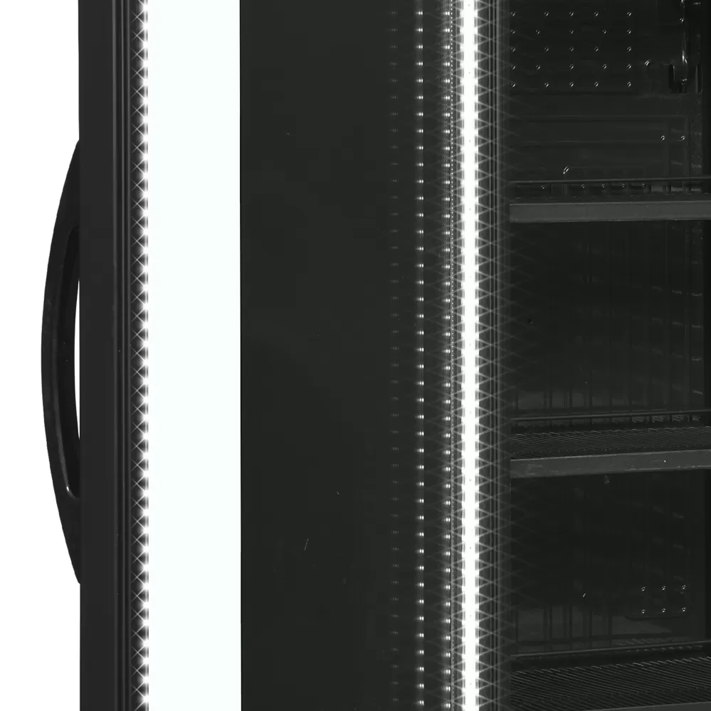 Řada CEV je naší nejprodávanější řadou chladicích zařízení na nápoje. Má vše, co je potřeba pro co nejlepší vystavení ledově vychlazených nápojů: prosklené dveře s LED osvětlením na vnitřní straně rámu dveří, nastavitelné police pro flexibilitu či třeba chlazení s pomocným ventilátorem, díky kterému je v celé skříni rovnoměrná teplota. A navíc je ideální pro prezentaci značky. levé křídlové prosklené dveře|černý interiér a exteriér|elegantní design|vynikající prezentace produktů|nadstandardní prostor na policích|LED osvětlení v rámu dveří|nastavitelné police|chlazení s pomocným ventilátorem Energeticky úsporná chladicí skříň s levými křídlovými dveřmi