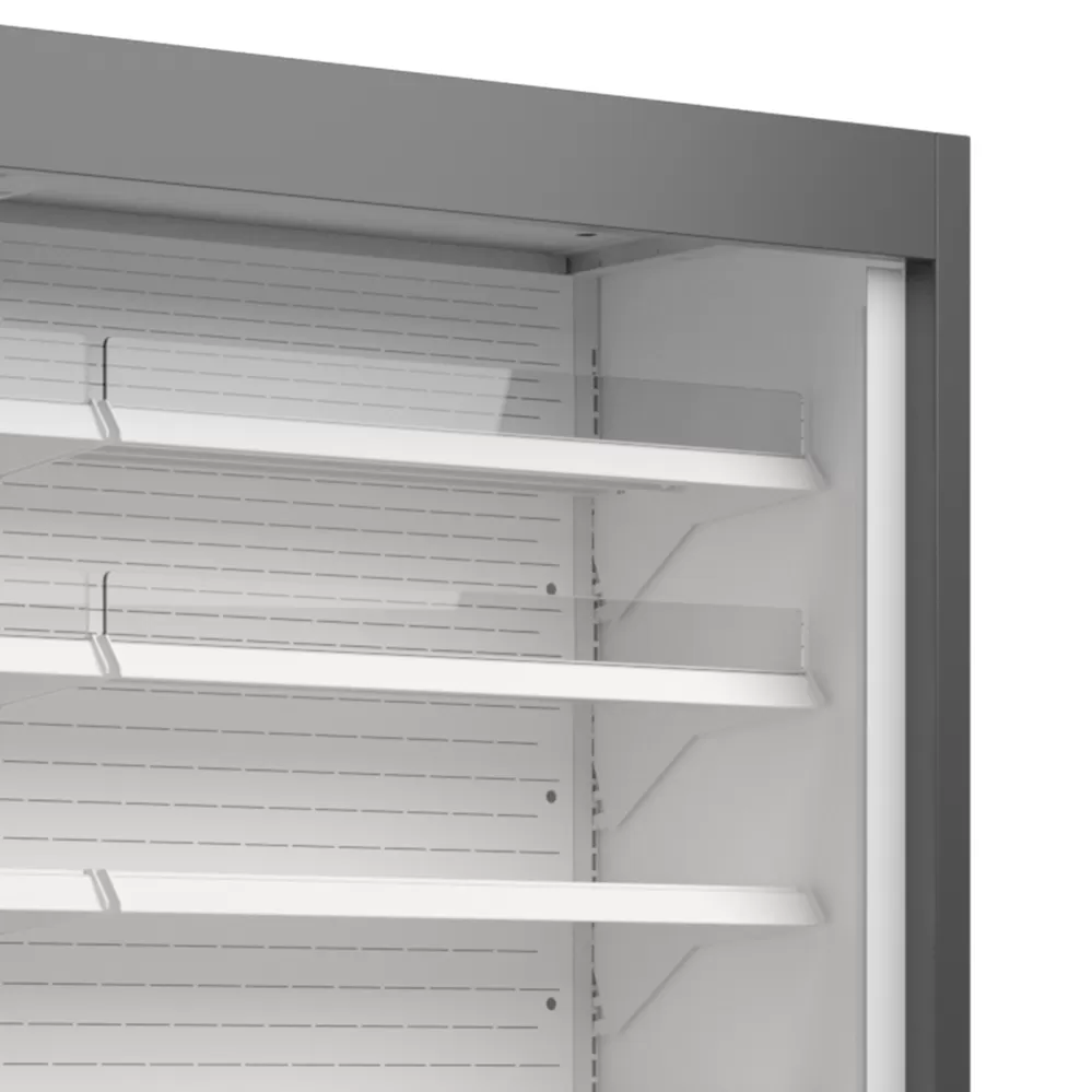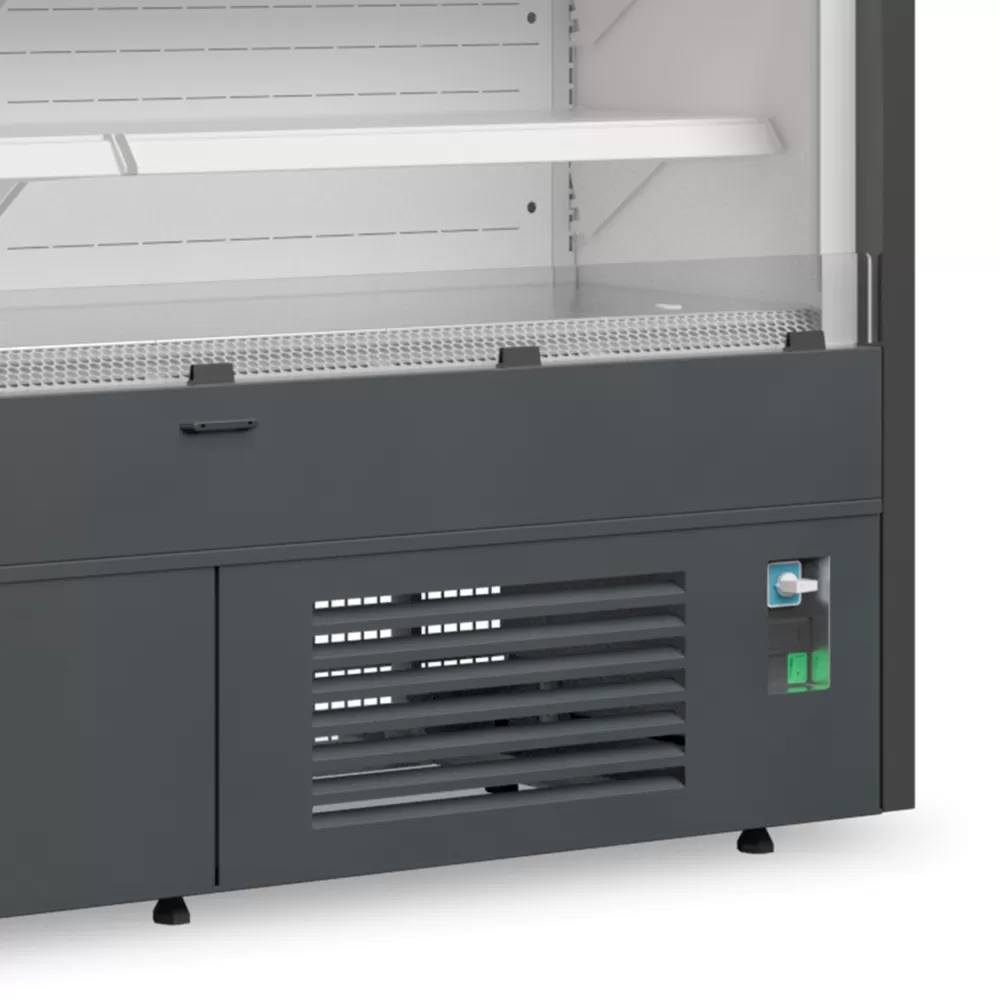 NA OBJEDNÁVKU • verze bez agregátu: odpočet dle délky vitríny – chladicí výkon 900 W / 1 bm při odpařovací teplotě -10 °C (verze DP, DU) • verze na zeleninu: nerezová záda a strop • celonerezová verze: nerez H17 – příplatek 30 %, nerez H18 – příplatek 40 % k doporučené ceně • spojování do sestav – bočnice 5 cm • ekologické chladivo R290 • tyče a háky na uzeniny • lakované police • nerezové police • odtávací tyč pod výparníkem • nízkoenergetické ventilátory • kolečka • plexi přepážka mezi moduly • plexi zábrana - police • H18 nerezová vana u výparníku • LED osvětlení polic • dřevěné opláštění: příplatek 7 % k doporučené ceně • přepravní balení – dřevěný box • jiné barevné provedení RAL • bez příplatku: LED osvětlení – barva bílá teplá otevřená s noční roletou|ventilované chlazení|vestavěný agregát|digitální termostat|automatické odtávání|automatické odpařování kondenzátu|5 chlazených nastavitelných polic|plexi zábrana police - 2 horní řady|cenovkové lišty|chlazená výstavní plocha|LED osvětlení vitríny horní a boční - barva bílá studená|prosklené izolační nebo plné bočnice Chladicí přístěnná vitrína vhodná do prodejen a supermarketů