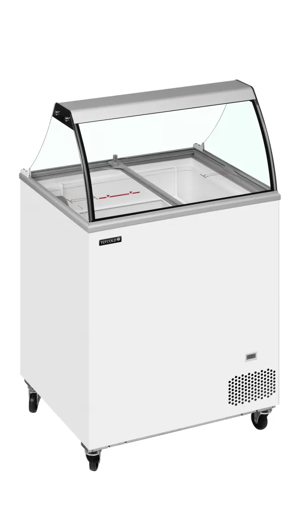Distributory IC SC SO mají rovná posuvná víka, která chrání prostor se zmrzlinou před únikem chladu, která jsou navíc opatřena zámkem. Koše pro GN na zmrzlinu 360x165x120 mm nejsou součástí. Jejich skladba se liší dle délky distributoru. Model 201: 1x koš 3sekční (kód 14704), model 301:1x koš 3sekční (kód 14704) + 1x koš 2sekční (kód 14703), model 401: 1x koš 3sekční (kód 14704) + 2x koš 2sekční (kód 14703). přední oblé sklo|rovná posuvná prosklená víka se zámkem|úložný prostor pod koši|kolečka s brzdou|klimatická třída 5 - vysoký výkon i v teplém prostředí|Na objednávku: koše vhodné pro GN na zmrzlinu|tento model pojme čtyři 5l plastové vaničky Distributor kopečkové zmrzliny