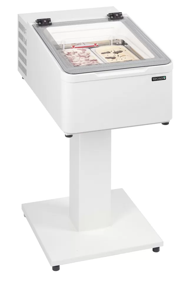 Řada TEFCOLD ICE je ideální pro podniky s omezeným prostorem, které však chtějí maximalizovat prodej kopečkové zmrzliny. Distributor zmrzliny ICE je navržen pro pohodlné umístění na pracovní desku či pult a je k dispozici v konfiguraci se dvěma nebo třemi vaničkami. Lze jej použít jak v přední, tak v zadní části podniku, což umožňuje rychlý a efektivní prodej oblíbených zmrzlin. Na vyžádání je možné objednat také vyvýšený podstavec a zásobník na nanuky. stolní model|náklon výstavní plochy pro lepší prezentaci|vhodné pro 5l vaničky na zmrzlinu (nejsou součástí)|Ideální pro bufety|snadný přístup k produktům|rovné výklopné prosklené víko|statické chlazení|nastavitelné nožky|na objednávku zásobník na nanuky Pultový distributor kopečkové zmrzliny na 3 vaničky