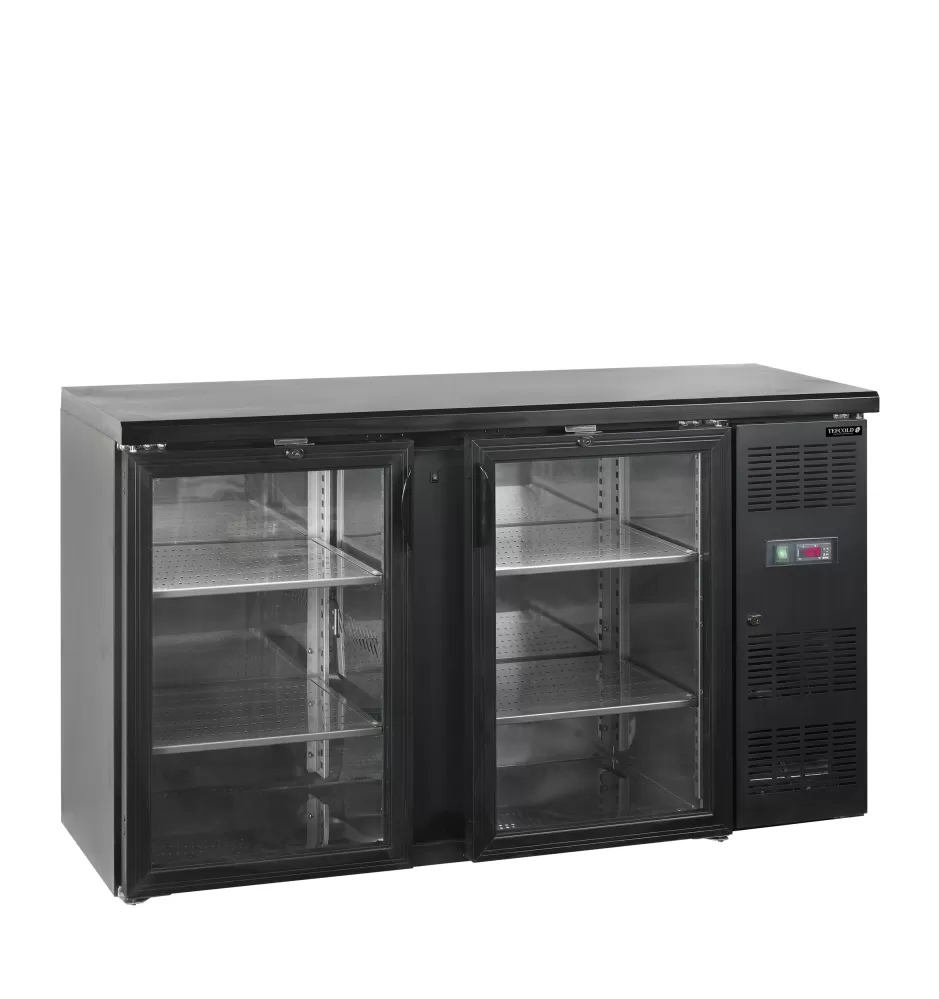 Chladicí minibary TEFCOLD CBC jsou oblíbené pro svůj elegantní vzhled, robustní poctivé provedení a variaci možností, co se velikosti týče. Křídlové dveře jsou samozavírací a prosklené (označení G jako "glass" - sklo), vyhřívané, k dispozici jsou také s plnými dveřmi. Vnitřní prostor je krásně viditelný díky LED osvětlení, které je u moderních minibarů samozřejmostí. Výšku minibaru je možné regulovat pomocí nastavitelných nožek. odolné zařízení do náročného provozu|samozavírací prosklené dveře|nerezový interiér se zrcadlovým efektem|nastavitelné nerezové police SS304|nastavitelné nožky|ventilované chlazení Černý minibar se dvěma prosklenými křídlovými dveřmi
