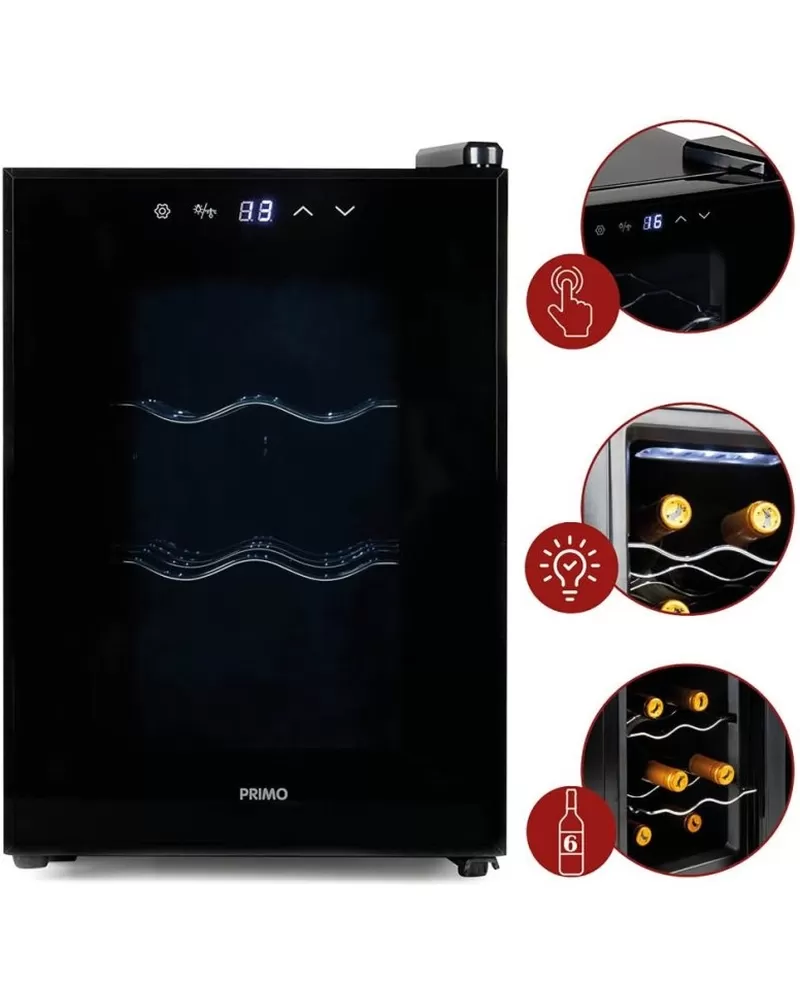 Domácí vinotéka na 6 lahví černá PRIMO PR168WK Vychutnejte si dokonale vychlazenou sklenku vína díky vinotéce Primo PR169WK. Domácí vinotéka… Celý popis