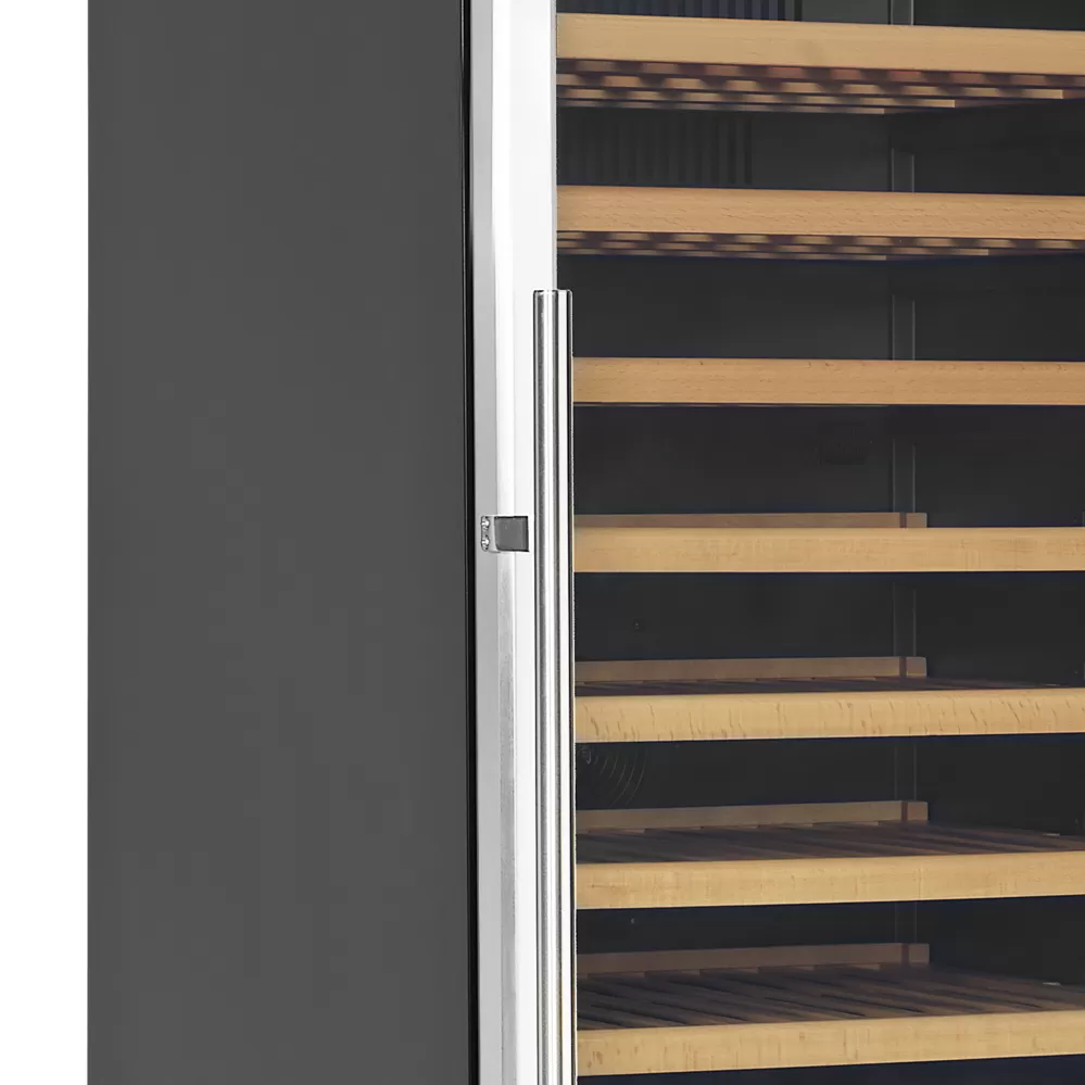 Vinotéky řady TFW-2S s prvky z nerezové oceli nabízejí moderní řešení pro vystavování a skladování lahví s vínem. Má elegantní design s přední stranou z nerezové oceli a černým interiérem, jemné LED osvětlení a výsuvné dřevěné police. Vinotéka je vybavena moderním chladicím systémem, který umožňuje nastavení dvou rozdílných teplot. Agregát disponuje nízkou hlučností a spotřebou elektrické energie. nerezový dveřní rám a rukojeť|2 teplotní zóny s maximální odchylkou 10 °C|energeticky úsporný chladicí systém|velmi nízká hlučnost|vnitřní LED osvětlení s vypínačem|prosklené dveře, lze měnit otevírání|dřevěné police|poplach vysoké/nízké teploty|police pro prezentaci zboží jako příslušenství Duální nerezová vinotéka