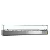 The GVC38 range of vitrine coolers is a great addition to gastro counters, as it enables you to have everything you need for food preparation within reach. It accepts GN1/3, GN1/6 and GN1/2 pans (not included). The cooler is made in SS201 stainless steel with a glass sneezeguard to protect the food. Ideal for pizza places, fast food restaurants, and sandwich shops. nerezová ocel|skleněné krytí na ochranu potravin|přizpůsobeno GN1/3 (nejsou součástí balení)|digitální termostat a teplotní displej|statické chlazení|nastavitelné nožky Stolní chladicí nástavba GN1/3