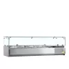 Řada chladicích nástaveb VK38 je skvělým doplňkem gastro pultů, protože vám umožňuje mít na dosah vše, co potřebujete k přípravě jídla. Je vhodná pro gastronádoby GN 1/3 a GN 1/2 x 150 mm (nejsou součástí). VK38-120: 4 x GN 1/3 nebo 3 x GN 1/3 + 1 x GN 1/2 VK38-150: 6 x GN 1/3 nebo 5 x GN 1/3 + 1 x GN 1/2 VK38-160: 7 x GN 1/3 nebo 5 x GN 1/3 + 1 x GN 1/2 VK38-180: 8 x GN 1/3 VK38-200: 9 x GN 1/3 nerezová ocel|statické chlazení|skleněné krytí na ochranu potravin|nastavitelné nožky|přizpůsobeno GN1/3 (nejsou součástí balení) Stolní chladicí nástavba