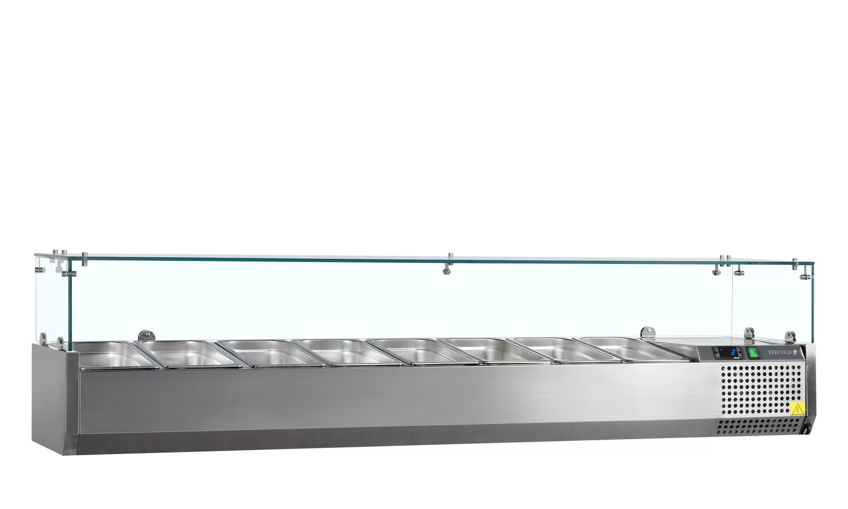 Řada chladicích nástaveb VK38 je skvělým doplňkem gastro pultů, protože vám umožňuje mít na dosah vše, co potřebujete k přípravě jídla. Je vhodná pro gastronádoby GN 1/3 a GN 1/2 x 150 mm (nejsou součástí). VK38-120: 4 x GN 1/3 nebo 3 x GN 1/3 + 1 x GN 1/2 VK38-150: 6 x GN 1/3 nebo 5 x GN 1/3 + 1 x GN 1/2 VK38-160: 7 x GN 1/3 nebo 5 x GN 1/3 + 1 x GN 1/2 VK38-180: 8 x GN 1/3 VK38-200: 9 x GN 1/3 nerezová ocel|statické chlazení|skleněné krytí na ochranu potravin|nastavitelné nožky|přizpůsobeno GN1/3 (nejsou součástí balení) Stolní chladicí nástavba.