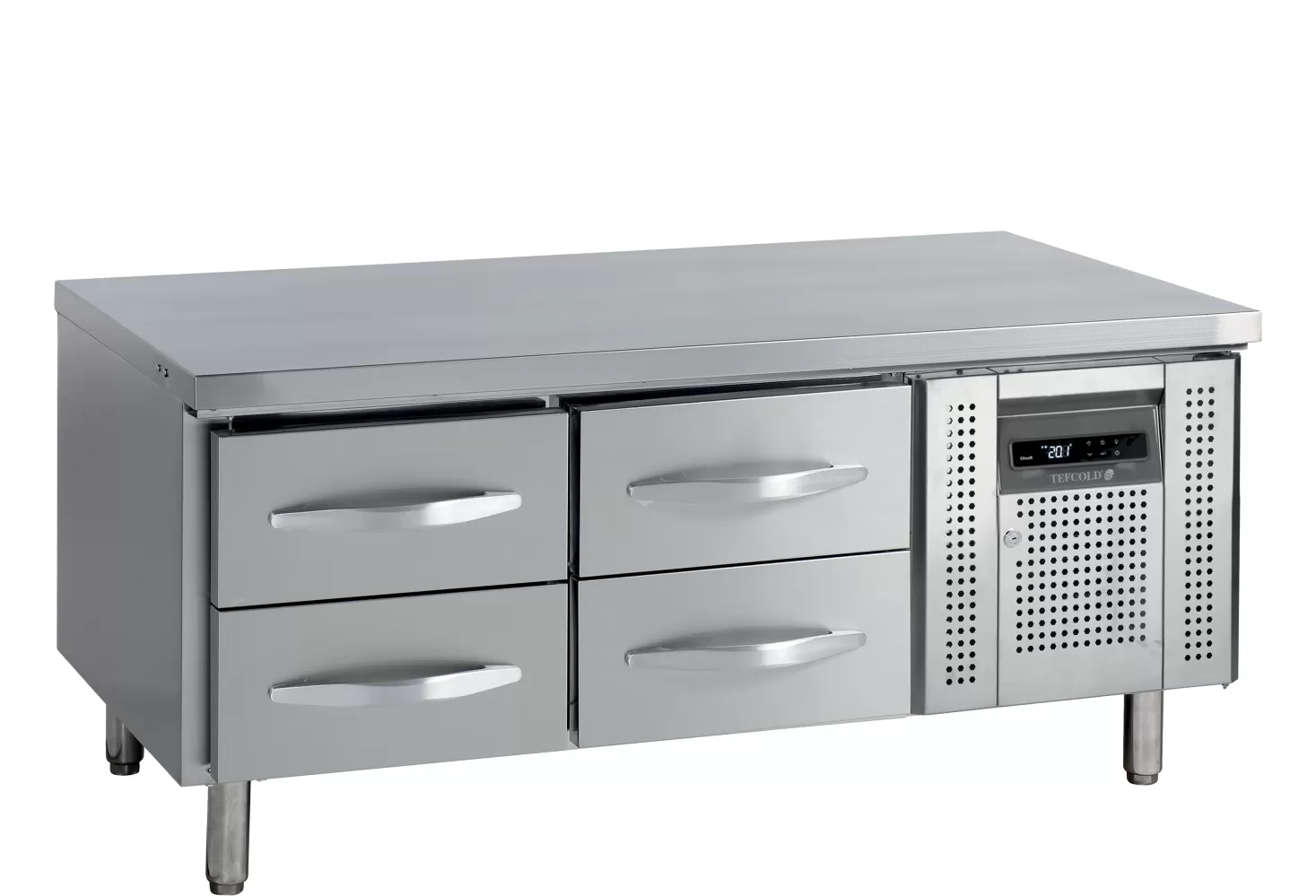 Řada UC chladicích podestaveb se zásuvkami je určena pro profesionální kuchyně a disponuje zásuvkami s rozměry GN1/1. Chladničky jsou vyrobeny z nerezové oceli SS304 a jsou k dispozici se 4, 6 nebo 8 zásuvkami. Systém s ventilovaným chlazením zajišťuje rychlé snížení teploty a její rovnoměrné rozložení. Nastavení teploty lze upravit pomocí elektronického termostatu. K dispozici jsou také podobné modely s dvířky místo zásuvek. nerezová ocel|automatické odmrazování|zásuvky GN 1/1|nastavitelné nohy|ventilované chlazení Chladicí podestavba se zásuvkami