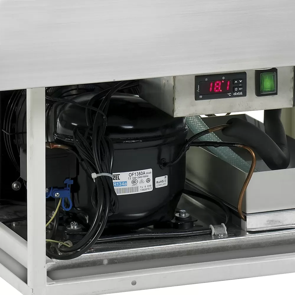 Řada CW stolních chladicích van nabízí bezpečný způsob prezentace chutných pokrmů například v bufetu. Lze je použít také pro chlazení lahví s nápoji. Vany jsou vyrobeny z nerezové oceli SS304, díky které je údržba snadná. Vany CW jsou vhodné pro vestavění do vašeho pultu a jsou určeny pro standardní rozměry gastronádob GN1/1 x 150 mm (max), gastronádoby nejsou součástí. nerezová ocel|lze vložit GN1/1 (nejsou součástí balení)|statické chlazení|elektronický termostat Stolní chladicí vana