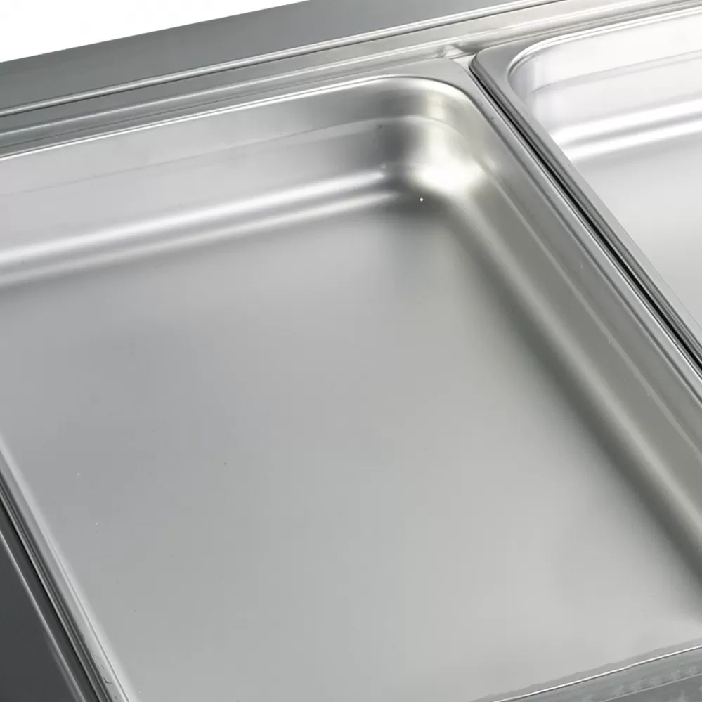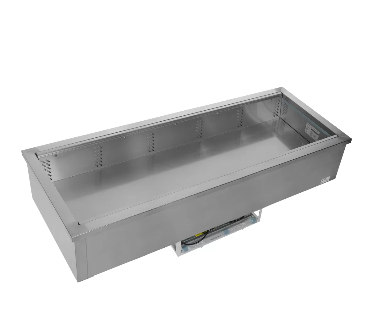 Řada CW /V stolních chladicích van nabízí bezpečný způsob prezentace chutných pokrmů například v bufetu. Lze je použít také pro chlazení lahví s nápoji. V je označení pro ventilované chlazení, které zajišťuje rovnoměrnější distribuci chladu ve vaně. Vany jsou vyrobeny z nerezové oceli SS304, díky které je údržba snadná. Vany CW jsou vhodné pro vestavění do vašeho pultu a jsou určeny pro standardní rozměry gastronádob GN1/1 x 150 mm (max), gastronádoby nejsou součástí. nerezová ocel|elektronický termostat |lze vložit GN1/1 (nejsou součástí balení)|ventilované chlazení Stolní chladicí vana