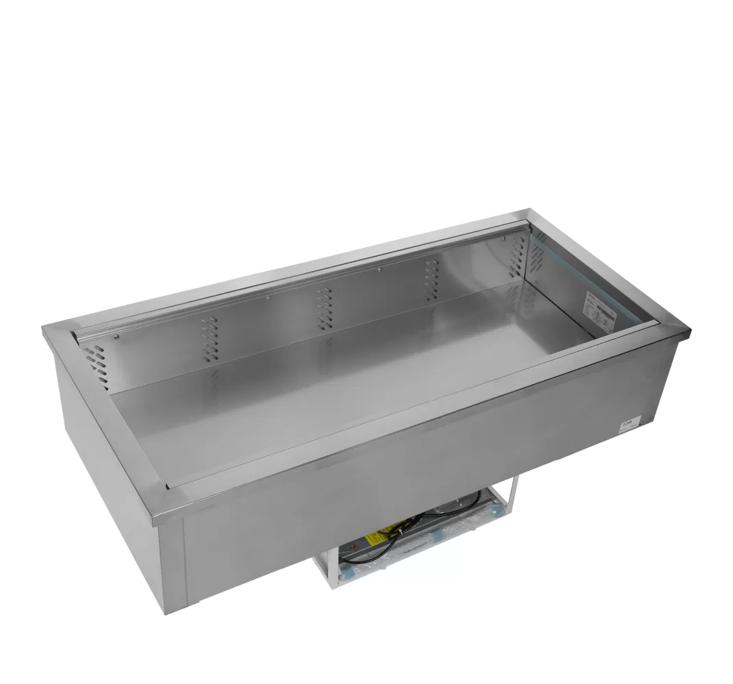 Řada CW /V stolních chladicích van nabízí bezpečný způsob prezentace chutných pokrmů například v bufetu. Lze je použít také pro chlazení lahví s nápoji. V je označení pro ventilované chlazení, které zajišťuje rovnoměrnější distribuci chladu ve vaně. Vany jsou vyrobeny z nerezové oceli SS304, díky které je údržba snadná. Vany CW jsou vhodné pro vestavění do vašeho pultu a jsou určeny pro standardní rozměry gastronádob GN1/1 x 150 mm (max), gastronádoby nejsou součástí. nerezová ocel|elektronický termostat |lze vložit GN1/1 (nejsou součástí balení)|ventilované chlazení Stolní chladicí vana