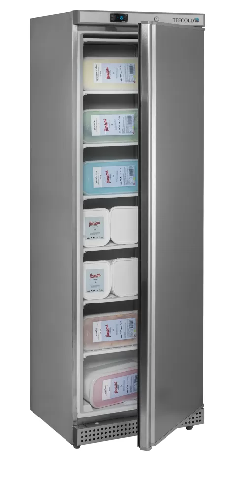 Řada mrazicích skříní UF-S je nerezová verze našich skříní UF. Nabízí vysokou kvalitu a spolehlivost za konkurenceschopnou cenu. Dodává se v různých velikostech, které mají čistý design s integrovanou rukojetí po celé délce dveří. Standardní mrazicí skříň je vybavena pevnými policemi, které pomáhají zajistit rovnoměrnou teplotu v celé skříni. Teplotu nastavíte na snadno ovladatelném digitálním displeji termostatu. nerezové provedení|integrované madlo|plné dveře, lze měnit otevírání|elektronický termostat |pevné chlazené police|zámek|nastavitelné nožky s pojezdovými válečky vzadu|digitální ukazatel teploty Mrazicí skříň s plnými dveřmi, nerezové provedení
