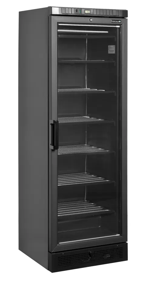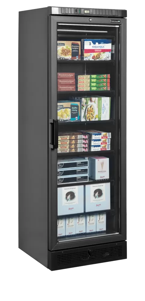 Řada mrazicích skříní UFSC nabízí skvělou prezentaci výrobků a konkurenceschopnou cenu. Má vyhřívané prosklené dveře, které zabraňují kondenzaci, statické chlazení a pevné police se zabudovanými výparníky, které zajišťují rovnoměrnou teplotu v celé skříni. Mraznička se dodává v černé a bílé barvě, s osvětleným reklamním panelem, nebo bez něj. "LH" značí levé otevírání dveří. černý interiér a exteriér|vyhřívané sklo zabraňující kondenzaci|vnitřní LED osvětlení s vypínačem|digitální ukazatel teploty|pevné chlazené police|zámek|nastavitelné nožky|odtok vody při odmrazování Mraznička s vyhřívanými prosklenými dveřmi
