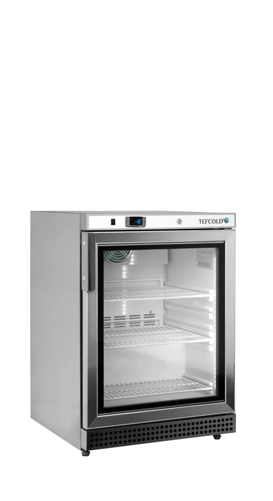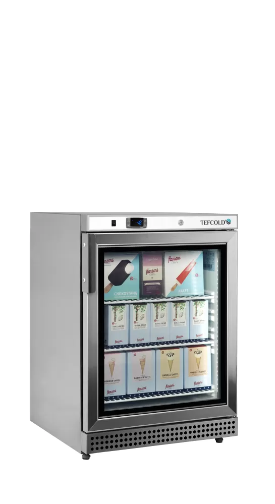 Řada mrazicích skříní UF-VSG je verzí našich nerezových mrazicích skříní s prosklenými dveřmi a ventilovaným chlazením. Dodává se v různých velikostech a nabízí velkou flexibilitu díky nastavitelným policím. Účinný ventilační chladicí systém zajišťuje rovnoměrnou teplotu v celé skříni. Teplotu lze nastavit na snadno ovladatelném digitálním displeji termostatu. Odmrazování probíhá automaticky. nerezové provedení|vyhřívané prosklené dveře|elektronický termostat |automatické odmrazování|nastavitelné police|vnitřní LED osvětlení|ventilované chlazení|nastavitelné nožky s pojezdovými válečky vzadu Jednodveřová mrazicí skříň s prosklenými dveřmi