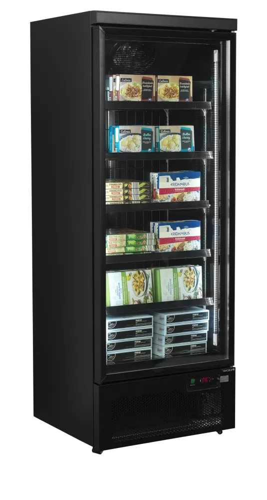 Řada mrazicích skříní s prosklenými dveřmi Atom Maxi nabízí skvělou kvalitu za konkurenceschopnou cenu. Je vybavena dvěma nebo třemi samozavíracími prosklenými dveřmi, LED osvětlením a nastavitelnými policemi pro optimální prezentaci výrobků. Disponuje účinným ventilačním chladicím systémem, automatickým odmrazováním a snadno ovladatelným regulátorem teploty. K dispozici také v chladicí verzi. ideální prezentace zmrazených potravin|černý interiér a exteriér|nízká spotřeba energie|samozavírací vyhřívané prosklené dveře|izolační tvrzené trojité sklo|nastavitelné police za každými dveřmi|ventilované chlazení|vnitřní svislé LED osvětlení|spodní výstavní plocha nerezová |digitální termostat a teplotní displej Černá chladicí skříň s prosklenými dveřmi a nastavitelnými policemi