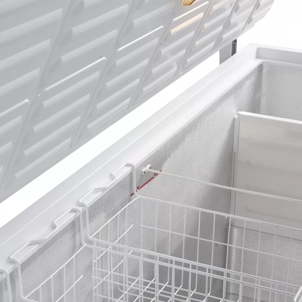 Řada mrazniček FR-SL nabízí spolehlivý výrobek za příznivou cenu. Dodává se v různých velikostech v bílé barvě a s pevným víkem v bílé lakované barvě. Má interiér z oceli s bílým nátěrem a odtok pro odvádění vody při rozmrazování pro snadnou údržbu. Součástí jsou i silná kolečka pro lepší mobilitu. rukojeť se zámkem|teploměr|vnitřní opláštění bílá lakovaná ocel|odtok vody při odmrazování|koše|pevná kolečka Pultová mraznička s plným víkem