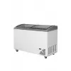 Prosklené mrazničky Byfal jsou k dostání ve třech bravách: červená, šedá, bíla a ve dvou provedeních: s rovným víkem a oblým víkem. Vyznačují se vynikajícími izolačními vlastnostmi. Vnější plášť je vyroben z pozinkovaného plechu, ten je z vnější strany potažen PVC, což jej činí odolnější proti korozi a poškrábání. Vnitřní stěny mrazničky jsou z Alu plechu o čistotě 99 % mimo dna, to je vyrobeno z ocelového plechu s povrchovou úpravou pro styk s potravinami. Vrchní krytí je z tvrzeného skla s termickou vrstvou,která zajistí lepší izolaci.Víko je opatřeno zámkem. Kompresor řídí digitální termostat s displejem, který znázorňuje aktuální teplotu. Ve standardní výbavě se nachází plný počet košů, do kterých je možno objednat dělící přepážky pro rozdělení mražených potravin. statické chlazení|vestavěný agregát|manuální odmrazování|digitální termostat s teploměrem|síla izolace stěny - 65 mm|bílé opláštění, uvnitř ALU|koše jsou součástí|zámek|kolečka Pultová mraznička s posuvným oblým víkem a digitálním termostatem s teploměrem