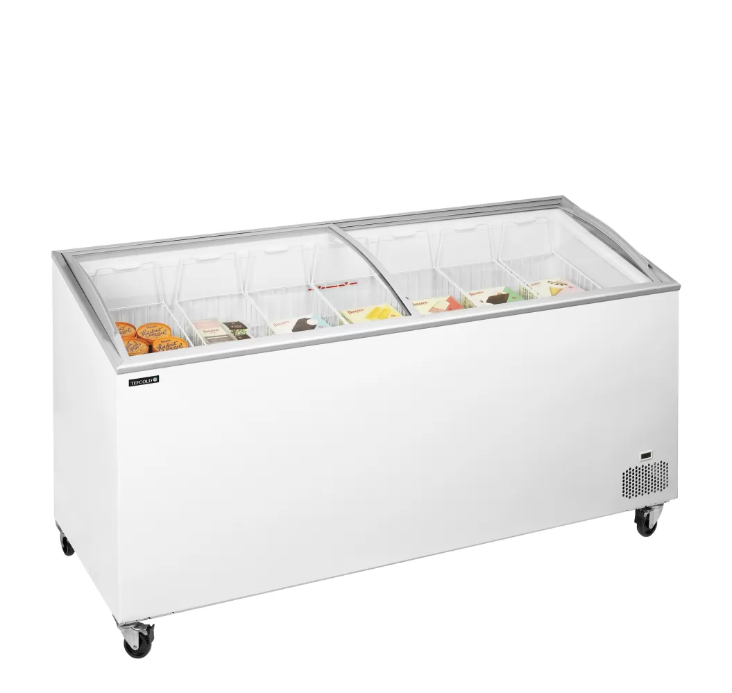 Standardní řada pultových mrazniček IC-SCEB nabízí stabilní a spolehlivě konstruované zařízení za příznivou cenu. Je skvělou volbou pro začínající podniky, sezónní prodej apod. Dodává se s oblými prosklenými posuvnými víky pro lepší viditelnost produktů a s kompletní sadou košů (kromě nejmenšího modelu), připravených k naplnění lahodnou zmrzlinou. Za účelem snadné manipulace je mraznička vybavena robustními kolečky pro vysokou zátěž. náklon výstavní plochy pro lepší prezentaci|oblá posuvná víka se zámkem|zahrnuje plnou sadu košů|ideální pro reklamní polepy|digitální teploměr|kolečka s brzdou|klimatická třída 5 - vysoký výkon i v teplém prostředí Pultová mraznička s proskleným posuvným víkem