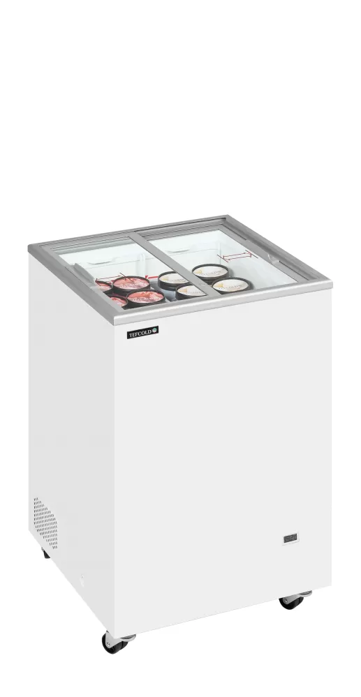 Standardní řada pultových mrazniček IC nabízí stabilní a spolehlivě konstruované zařízení za příznivou cenu. Je skvělou volbou pro začínající podniky, sezónní prodej apod. Dodává se s rovnými prosklenými posuvnými víky pro lepší viditelnost produktů a s kompletní sadou košů připravených k naplnění např. lahodnou zmrzlinou. Za účelem snadné manipulace je mraznička vybavena robustními kolečky pro vysokou zátěž. rovná posuvná prosklená víka se zámkem|ideální pro reklamní polep|digitální teploměr|kolečka s brzdou|drátěné koše, bílé|klimatická třída 5 - vysoký výkon i v teplém prostředí Pultová mraznička s proskleným rovným víkem