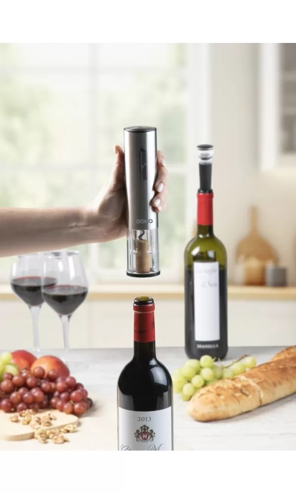 Pokud máte rádi víno a rádi si užíváte i ten kouzelný moment při otevírání, tak se elektrická vývrtka DOMO DO3103 stane neodmyslytelnou součástí vaší domácnosti. Robusní tělo v nerezovém dekoru padne dobře do ruky (váží pouhých 280 g) a velmi dobře se s ním pracuje.