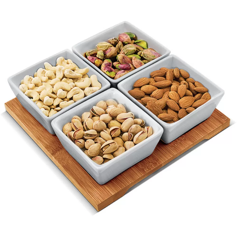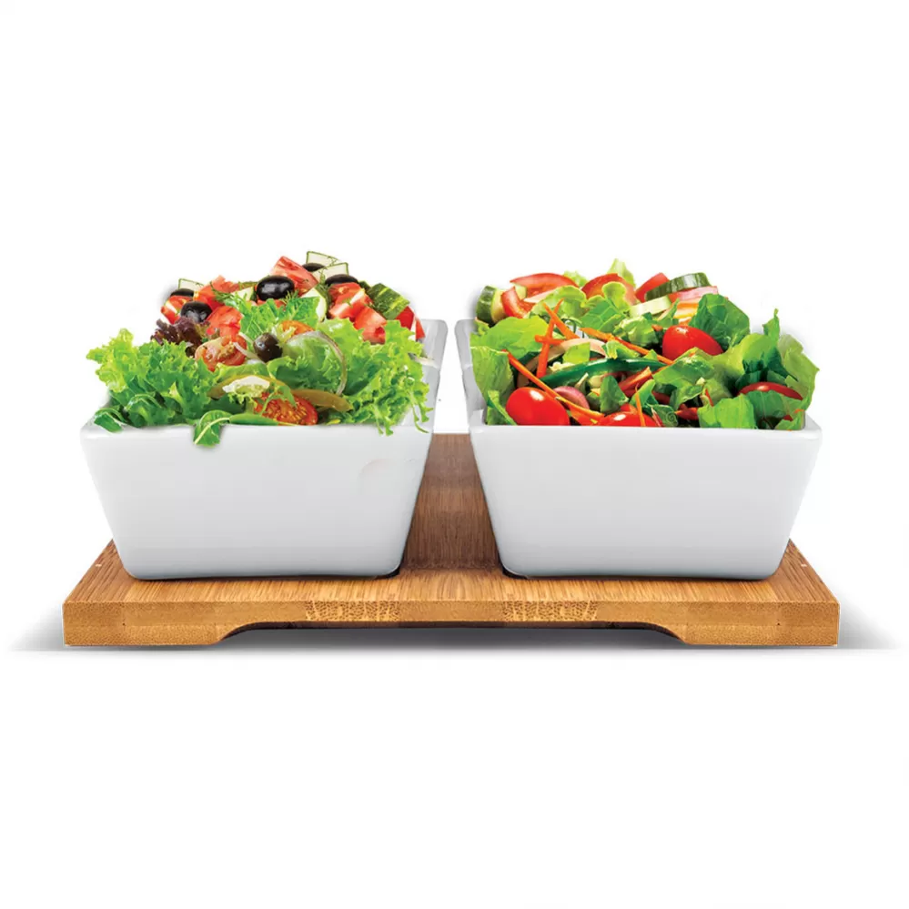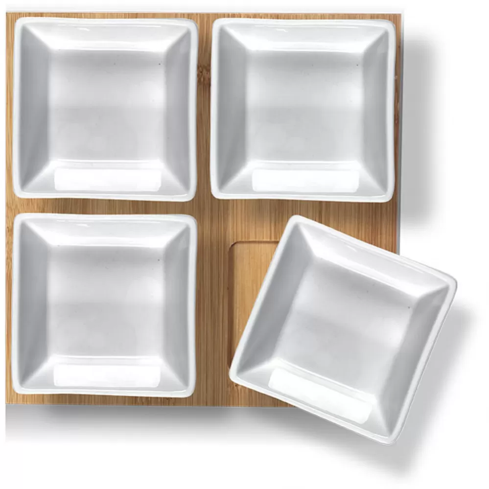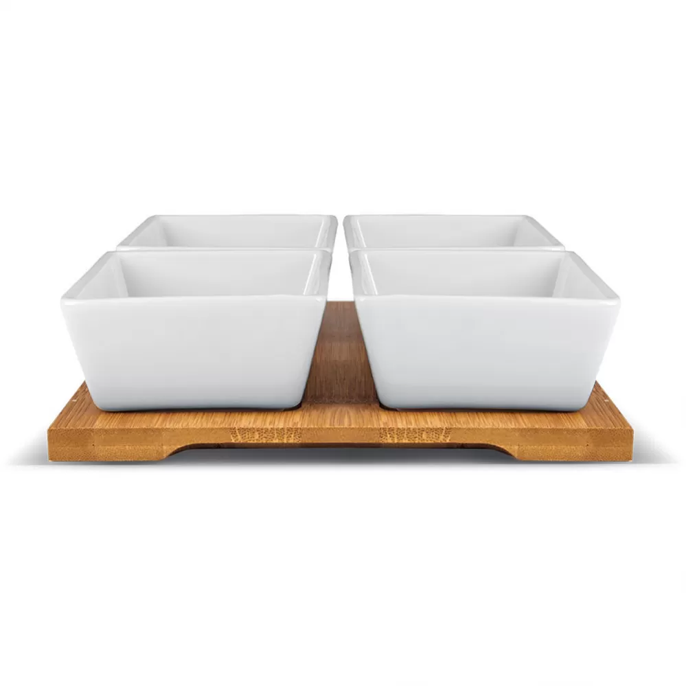 Misky sada 4ks BAMBOO LAMART LT9018 Porcelánová série pro každodenní užití Sada obsahuje 4x misku, dřevěný podnos Snadná údržba a čistění Celý popis
