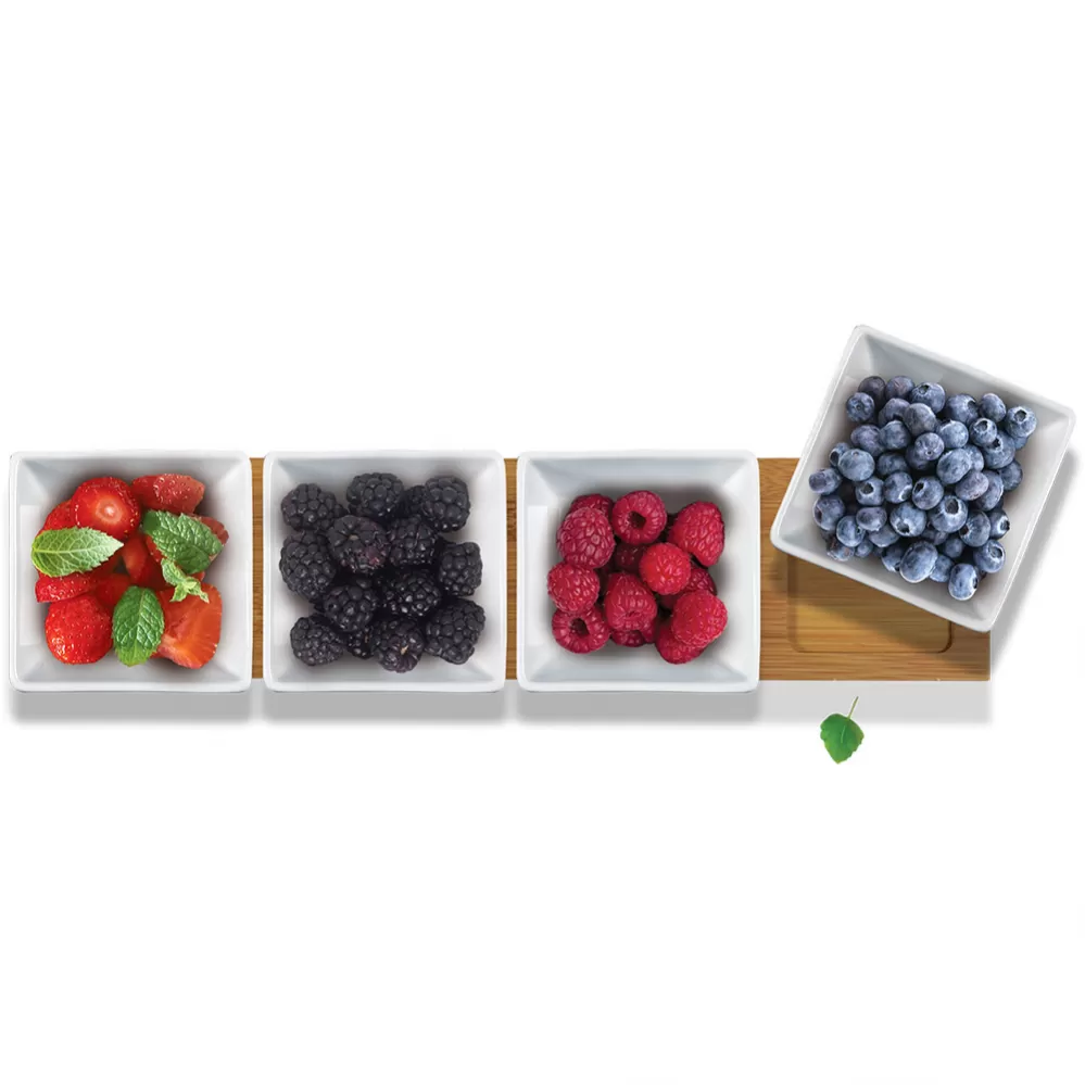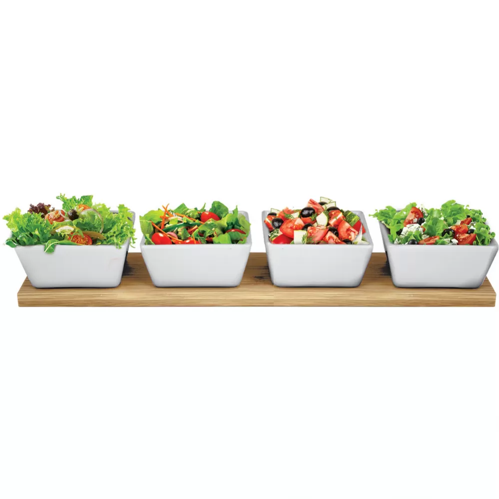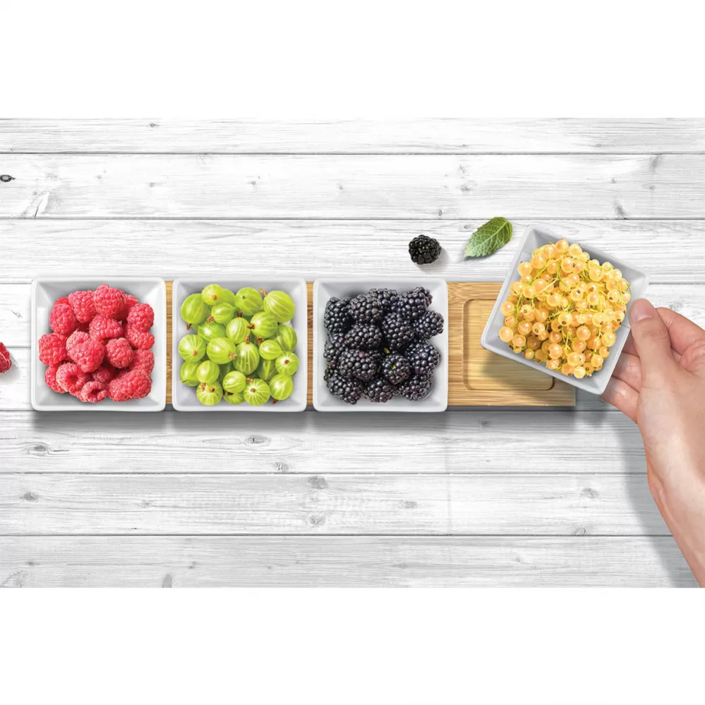Servírovací misky 4ks Bamboo LAMART LT9020 Porcelánová série pro každodenní užití Sada obsahuje 4x misku, dřevěný podnos Snadná údržba a… Celý popis